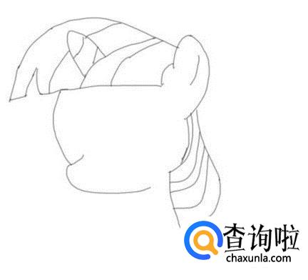 首先画出小马宝莉的头部上的毛发,然后在毛发上画出小马宝莉的耳朵和角部,如图所示: