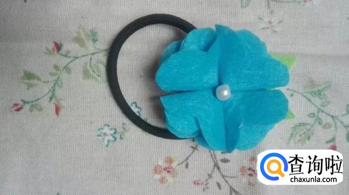 做出来的成品可以粘在头绳上面,这样就是一个美美的不织布花朵头绳啦。