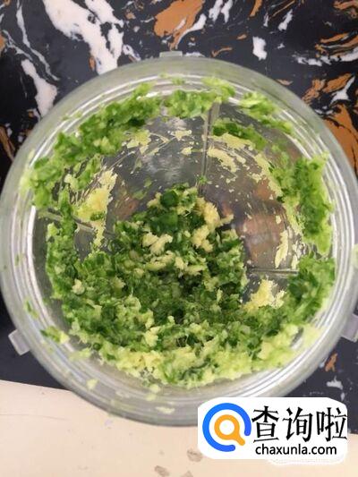 将姜和葱花放入辅食机里,搅烂;