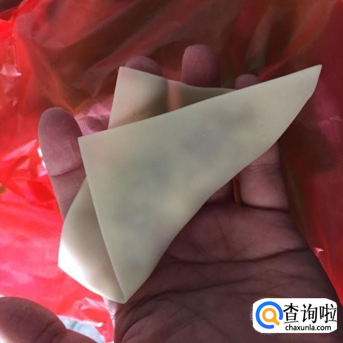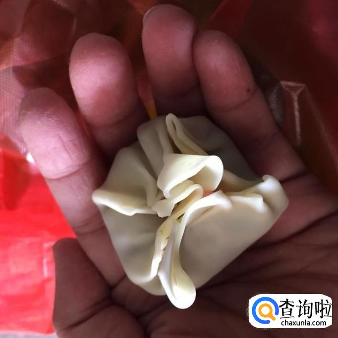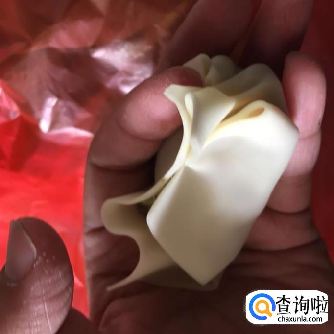 将饺子皮往上折一下,使它变成不规则的形状;如下图所示;