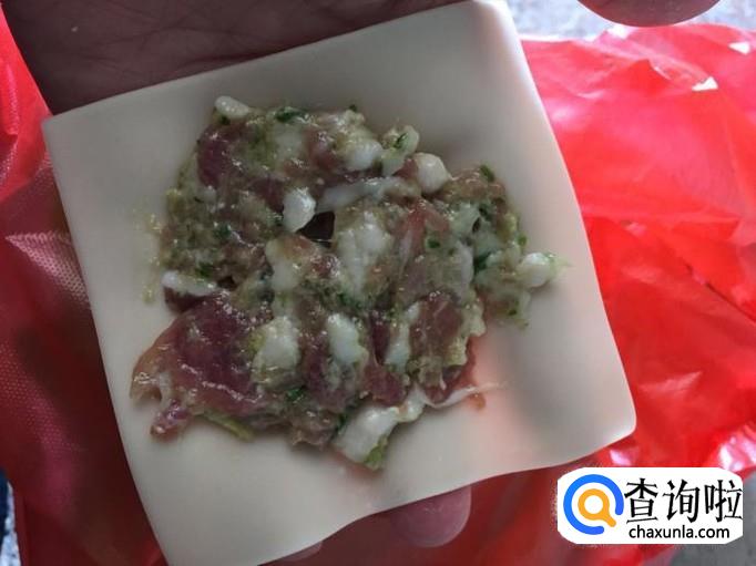材料:五花肉 姜 葱 生粉 蚝油 味极鲜酱油 糖 盐 鸡精 馄饨皮 料酒