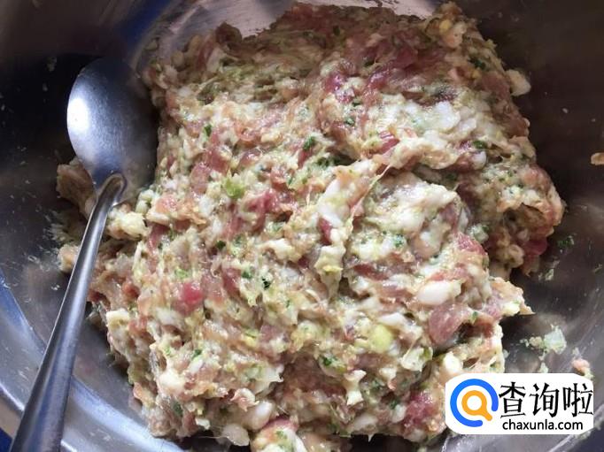 然后将所有食材同一个方向抓匀,腌制10-15分钟;接着取一根汤匙,就可以准备包馄饨了;