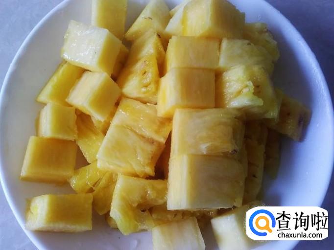 菠萝去皮,然后切成小方块。【因为是凤梨菠萝所以不用泡盐水】