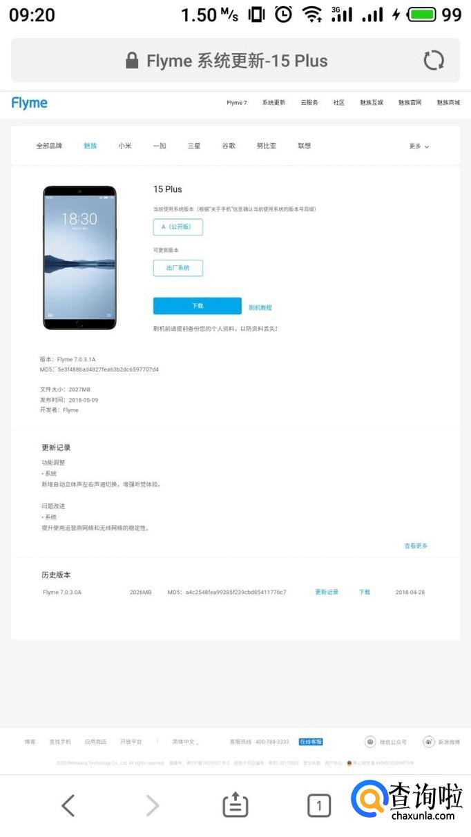 此外,如果你想要降级或者是刷其他版本的话,在Flyme官网选择机型下载安装即可。