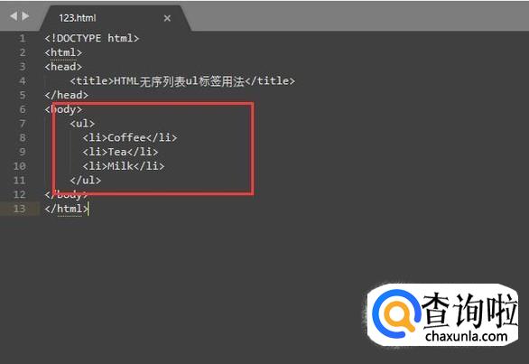 然后在html文档中加入ul标签内容,如下图所示