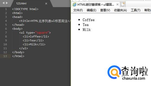 另外我们也可以通过type属性指定内容前面的标签类型,如下图所示