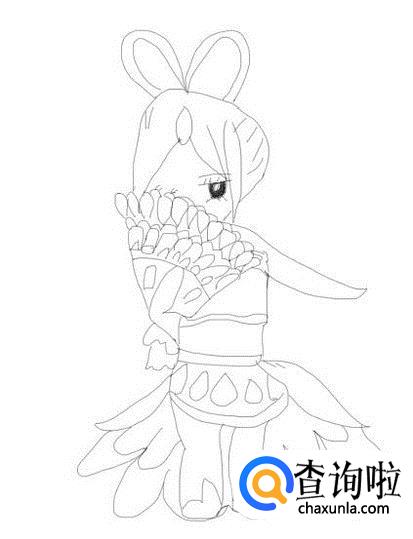 最后再画出蓝孔雀叶罗丽的裙子及裙子上面的花纹线,这样蓝孔雀叶罗丽就画好了,如图所示: