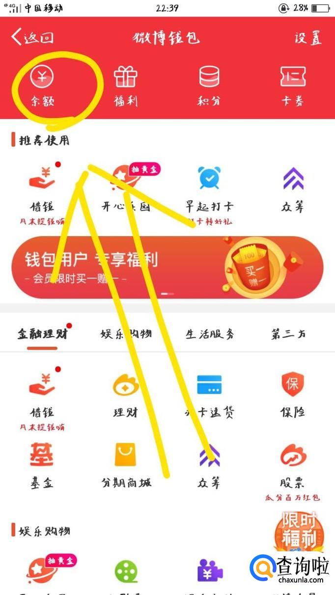 点击“微博钱包”图标。