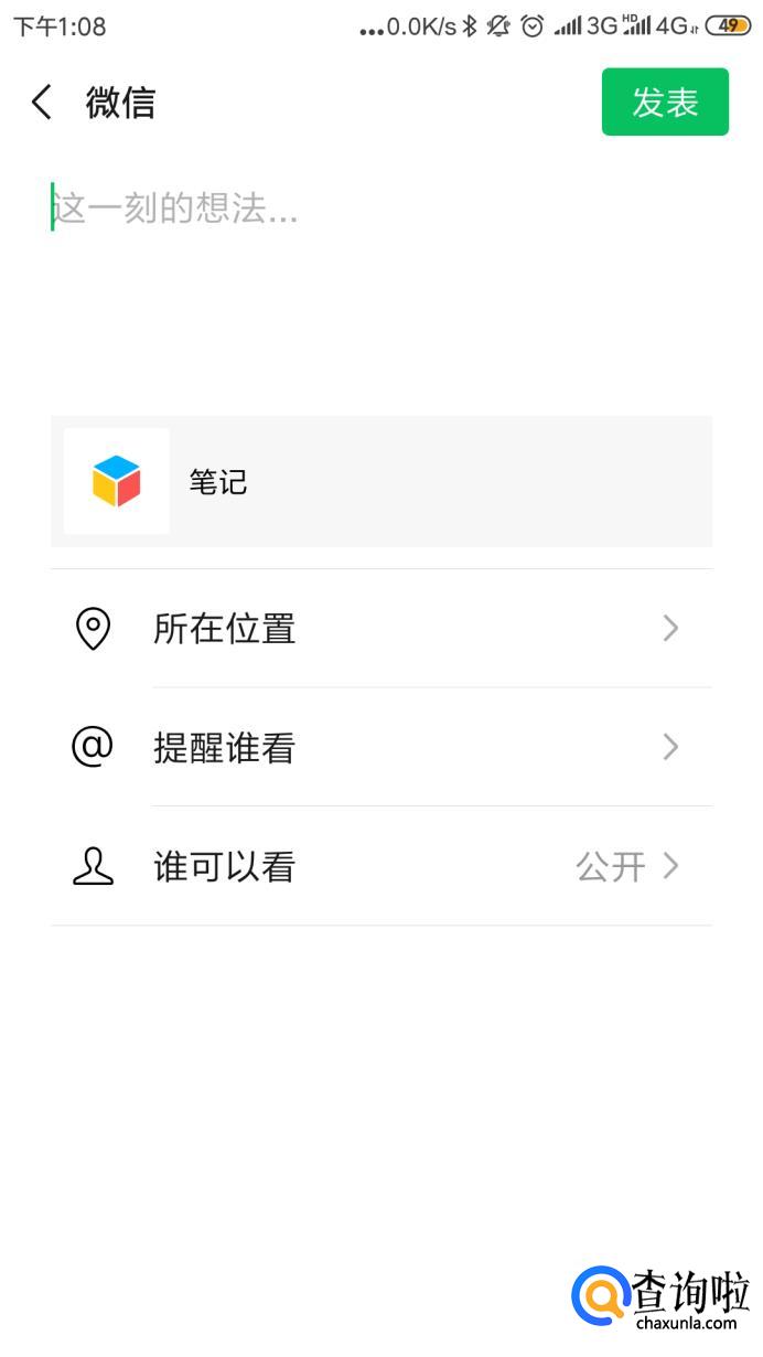 在朋友圈动态编辑页面,可以给该视频添加一些文字,编辑完成后,点击页面右上角的【发表】即可: