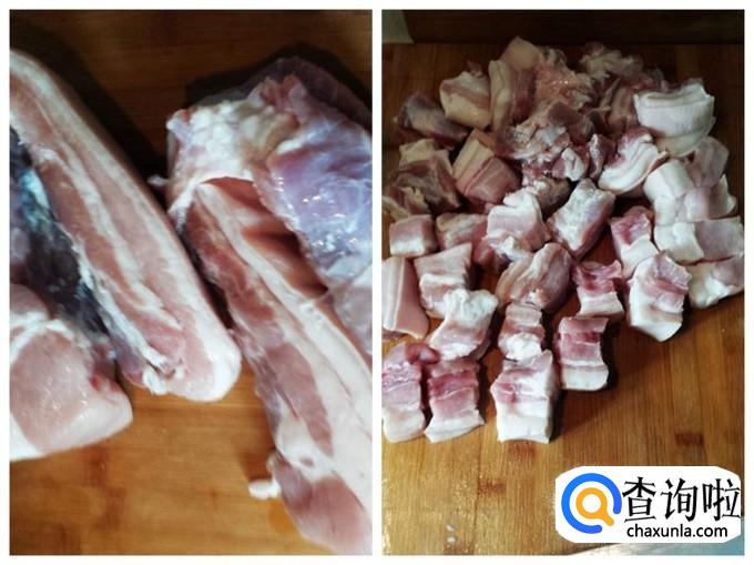 五花肉洗净后,切成块备用。