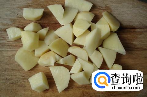土豆洗净去皮,然后切成块待用。