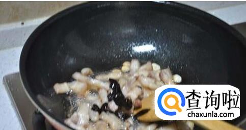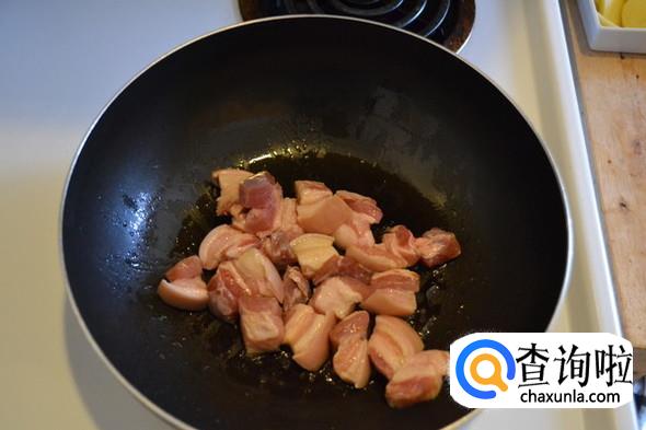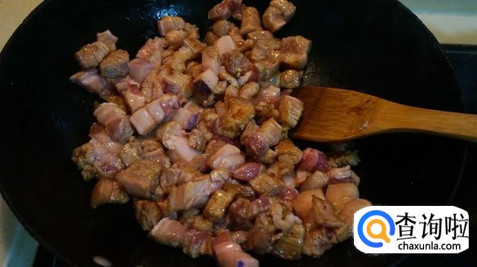 把五花肉翻炒至图中的样子之后盛盘。
