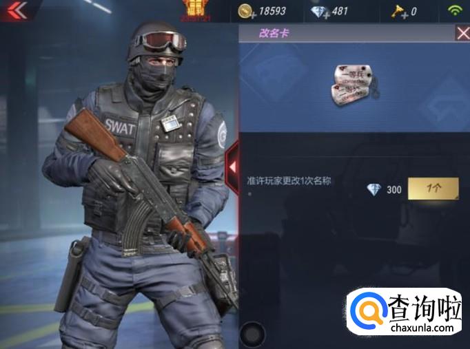 在商城页面选中改名卡后,接着进入到改名卡的购买页面,之后花费300钻石就能购买到改名卡了。