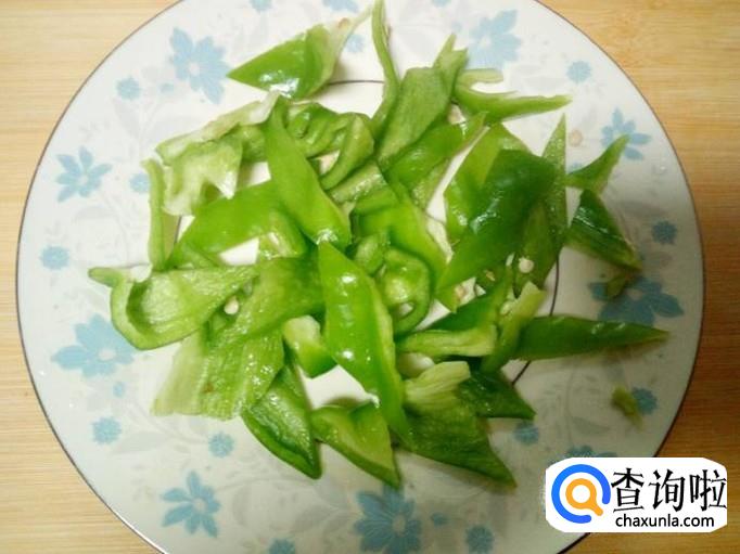 青椒用水清洗干净,控干水分,切成片。切好葱,姜,蒜,备用。