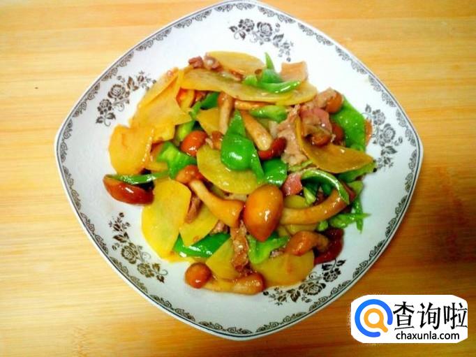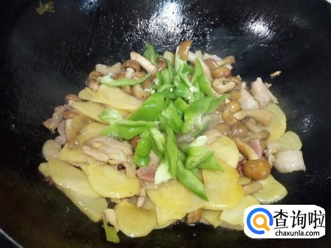 滑子蘑 200克,土豆 1个,五花肉 100克,麻辣青椒 1个。