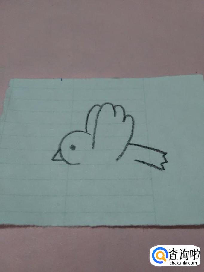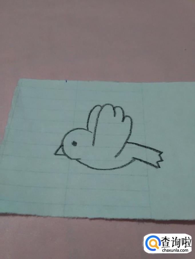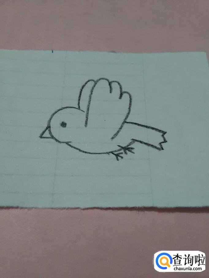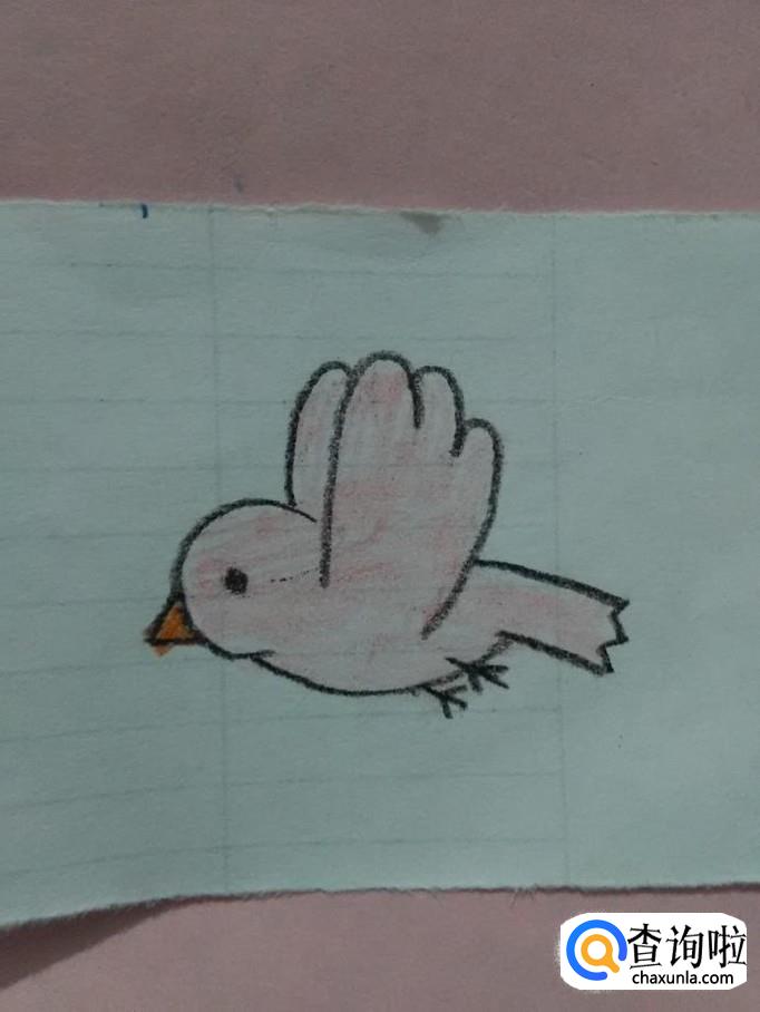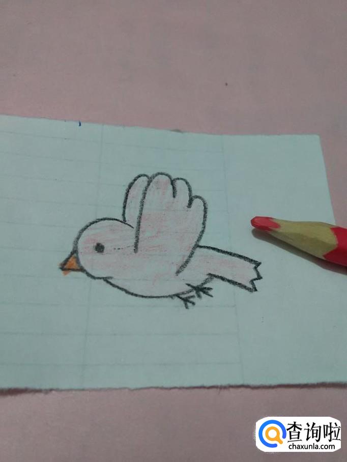 最后,用粉色笔将小鸟涂成粉色,飞翔的小鸟就画完了。