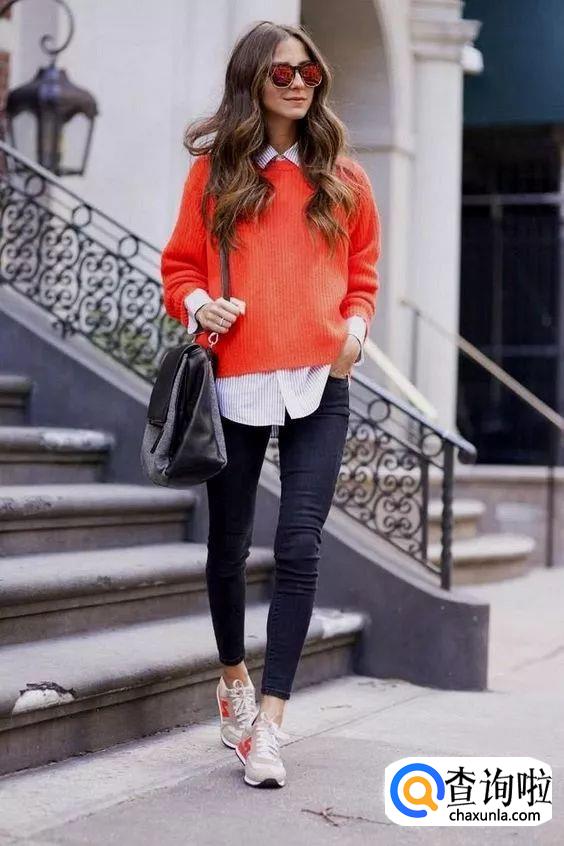 橙黄色真的非常荧光,即使你觉得它颜色再亮眼也一定要避开,很容易就会穿成“黑土妞”。
