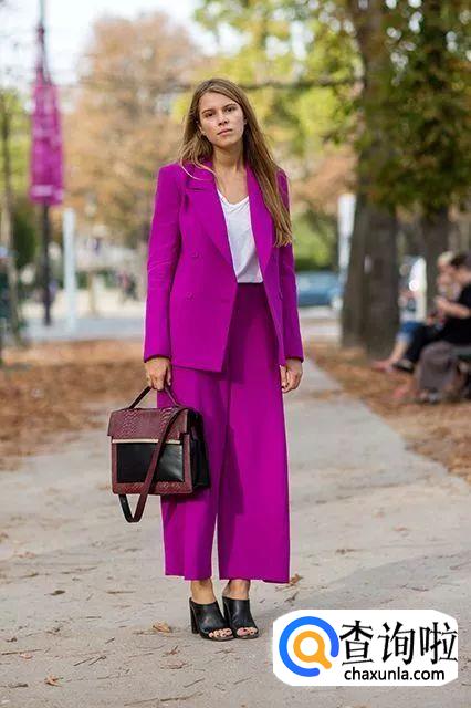 紫色是今年的流行色,但是这个颜色很难驾驭,大概只有冷白皮才能把紫色穿的好看,特别是这种艳紫色,黄皮穿上会紫中透黑,简直是灾难现场。