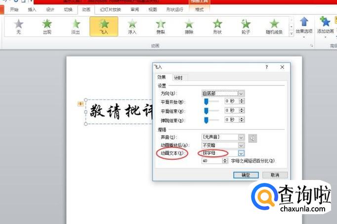 最后在弹出来的对话框中,找到【动画文本】,选择【按字母】,点击确定,就完成了。如图所示