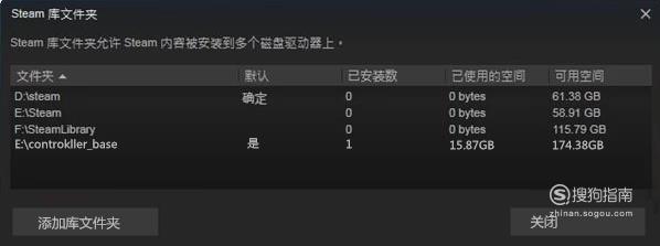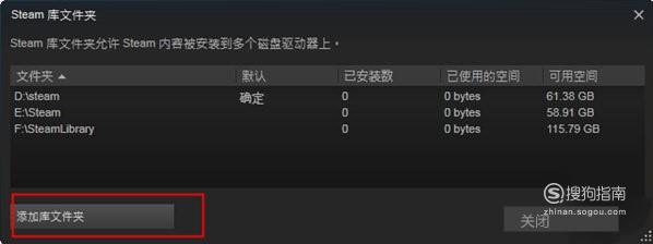 点击【steam库文件夹】,就可以添加一个steam库文件夹。这时点击左下角的【添加库文件夹】选项。