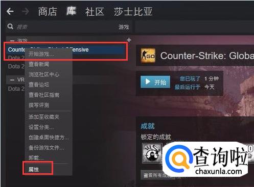 此时用鼠标右键点击【csgo】,在下拉栏中选择【属性】选项。