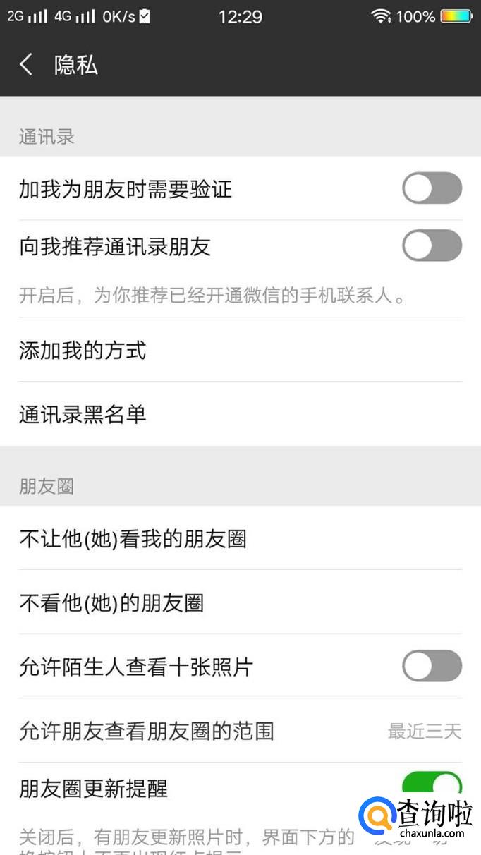 进入之后,即可看到各个隐私选项,如图所示。