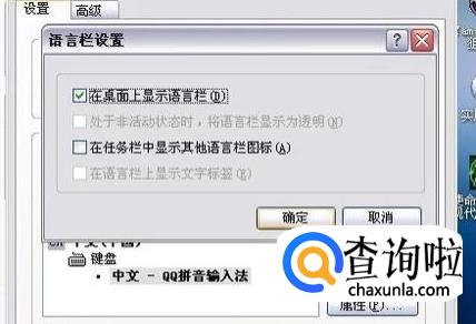 点击“设置”,勾选在桌面上显示语言栏,点击“确定”。