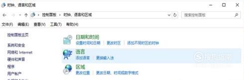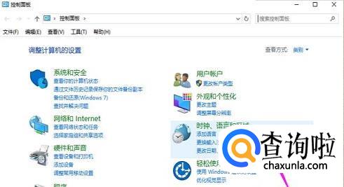 进入控制面板界面,找到“时钟、语言和区域”选项。