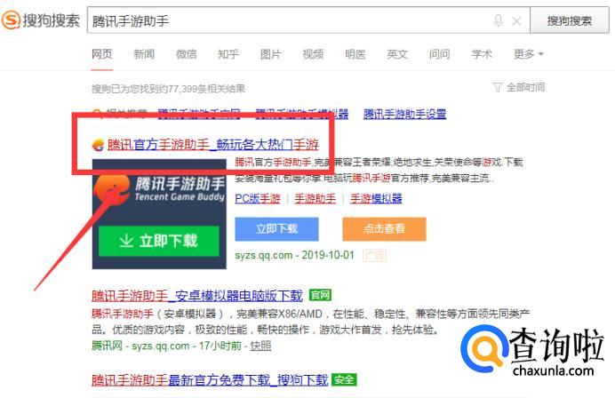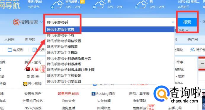 打开电脑,点开搜索,输入【腾讯手游助手】并搜索。