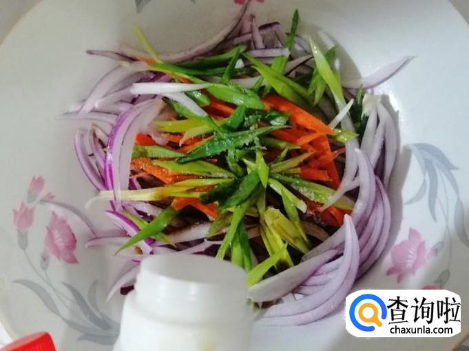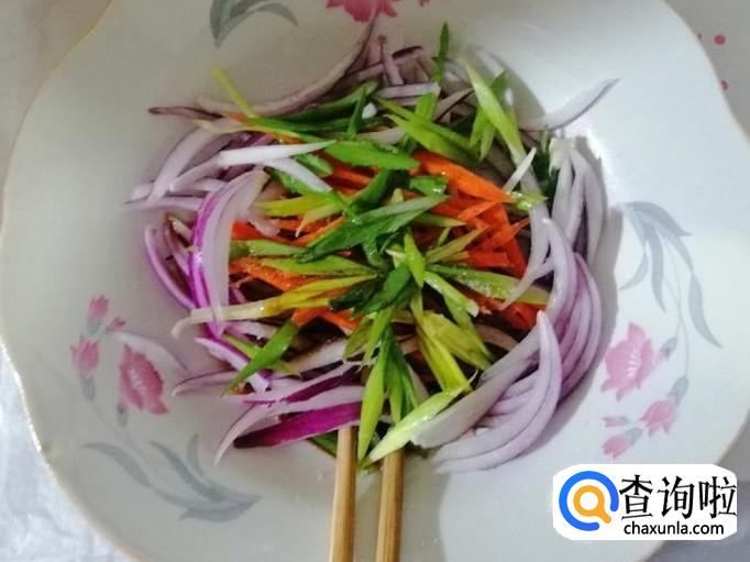 适量圆葱、胡萝卜、青葱、食盐、香醋、生抽、香油、味精