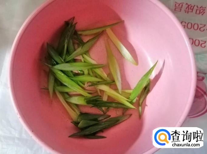 取适量新鲜的青葱,用清水把葱洗净,然后用刀把葱斜着切成细丝,切好盛入容器中待用。