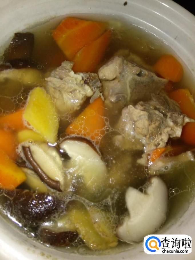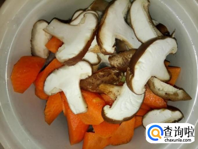 材料:胡萝卜 香菇 排骨 姜 盐 鸡精