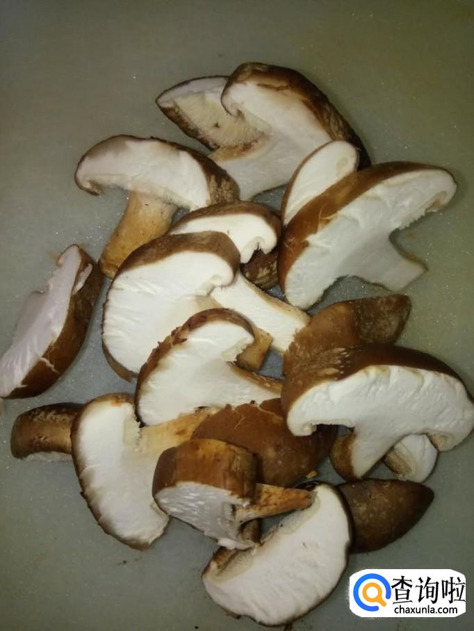 取4-5个鲜香菇,将香菇洗净后,竖着切成薄片;这样更容易熟;
