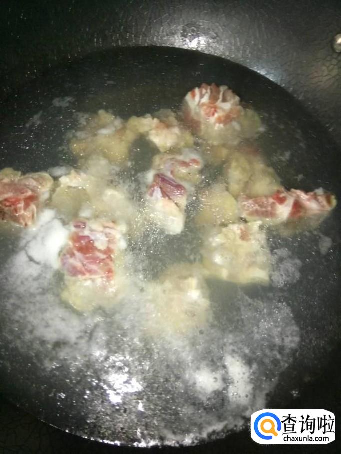 将排骨洗净,放入锅里,加入适量的水,煮开;再将排骨捞出,用凉水冲洗干净;