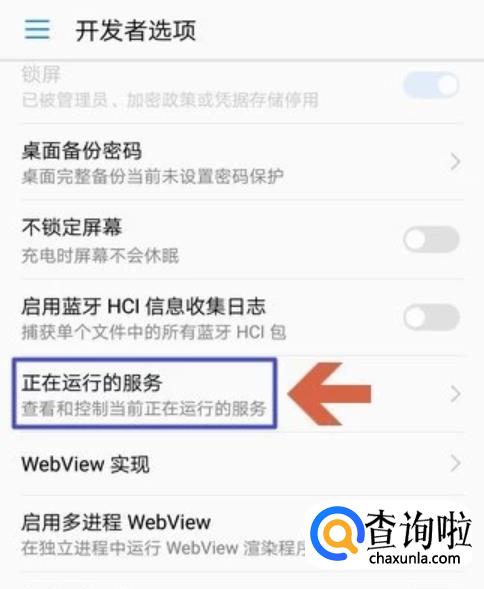 之后再“开发人员选项”中找到“正在运行的服务”,我们就可以制止后台运行的应用程序。