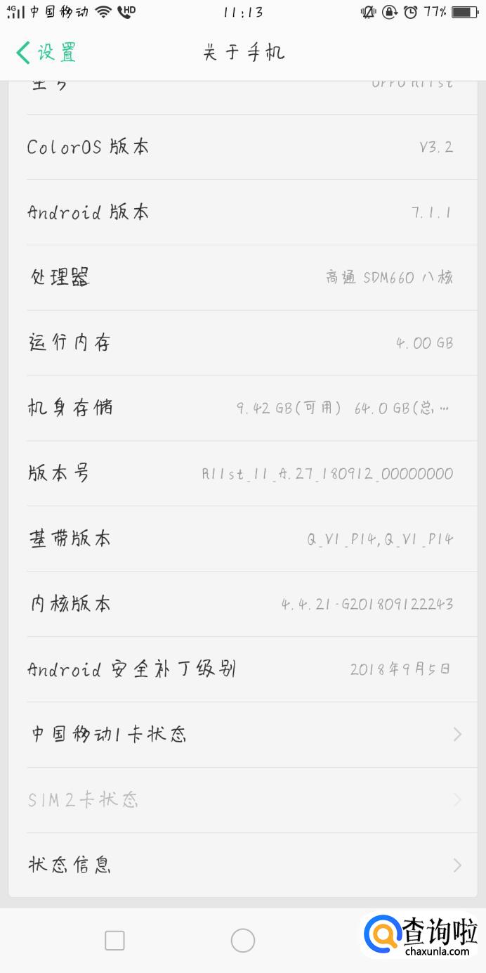 之后可以看见手机的一些基本信息,找到“版本号”并多次点击,这样就可以开启“开发人员选项”。