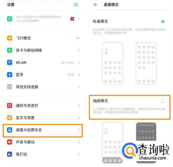 打开方式:设置 - 桌面与锁屏杂志 - 桌面模式 - 抽屉模式