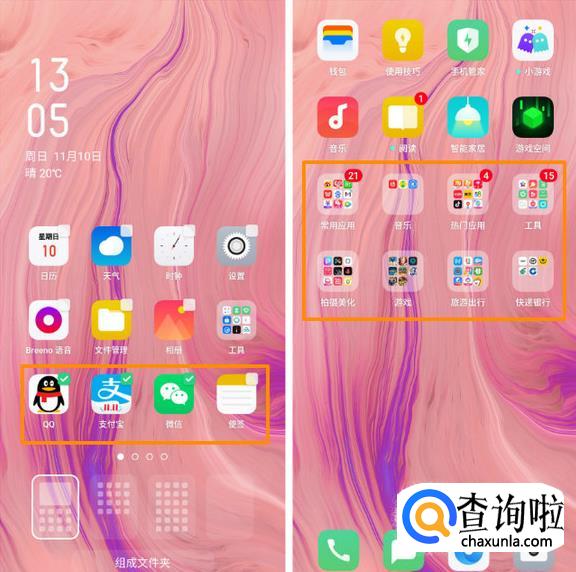 打开方式 : 桌面双指内划-选择应用-组成文件夹 - 03