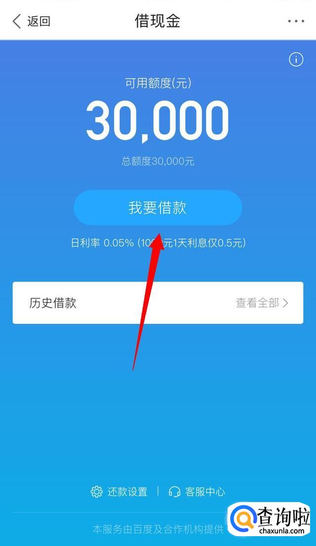 当资格审核满足条件后,在首页中找到“借款”,进入之后点击“我要借款”选项就可以啦!