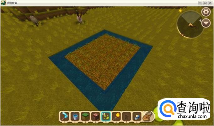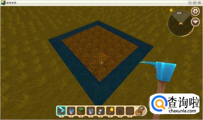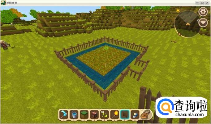 在我们要生产小麦的空地四周挖一道水渠,在河边使用桶来装水,再将水倒入水渠中,以后便能自动给耕地灌水。
