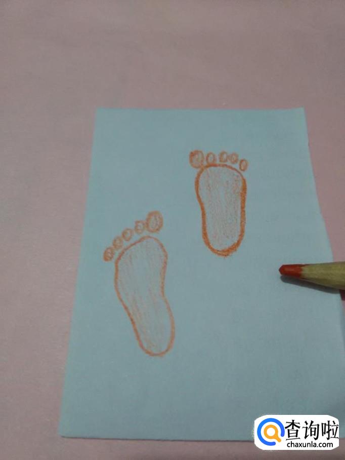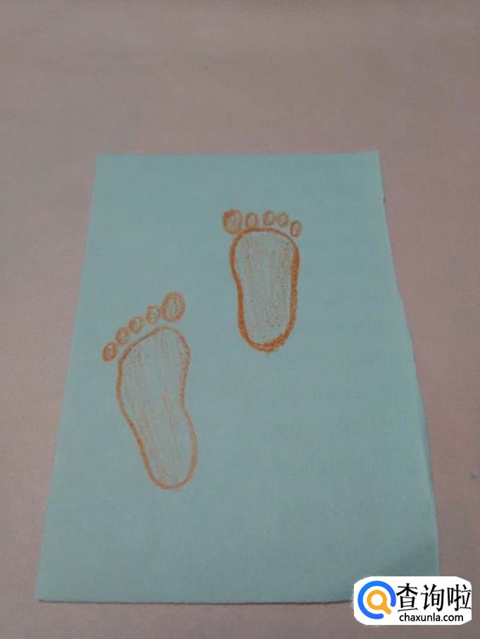 最后,用彩笔将两只脚印涂上颜色,脚印就画完了。