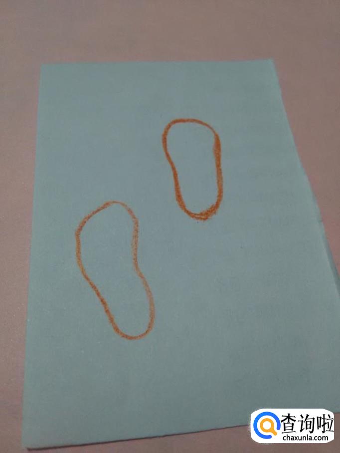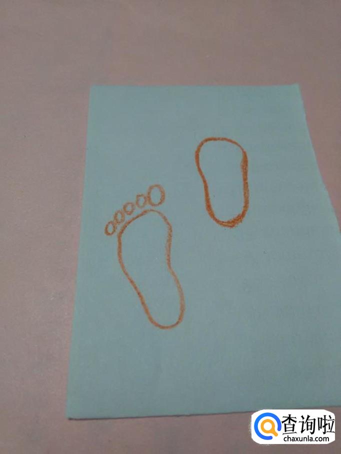 画脚印,要画出对称的形状,大脚趾要画在内侧,下面就开始画脚印。