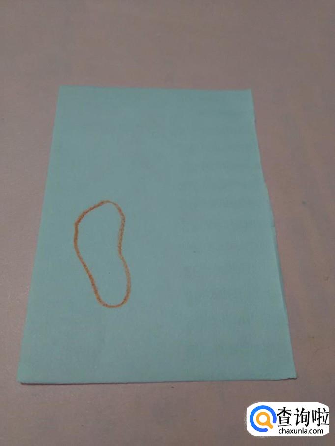 先用笔在纸的左下角画一个弯弯的豆子形状,表示左脚。