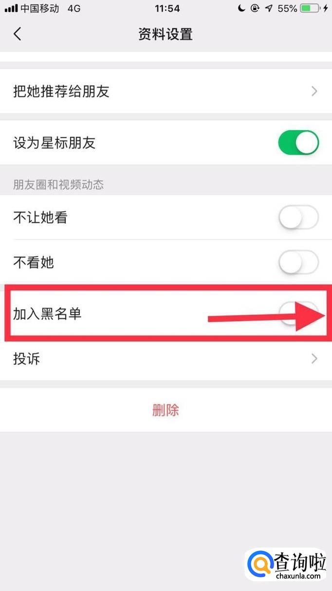 最后点击开启加入黑名单开关就可以了。