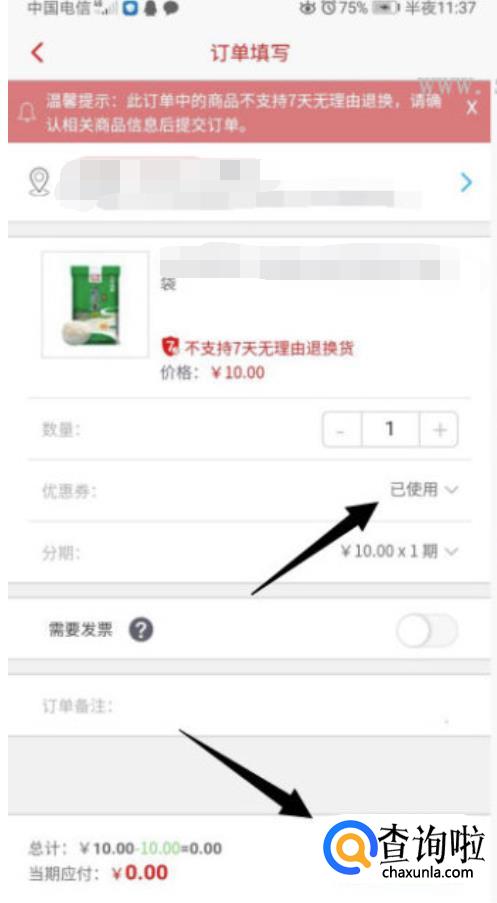 如果忘记核对了,我们可以找到订单,查看订单详情,可以看见是有优惠10元钱的。