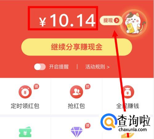 如果余额超过10元,我们就可以提现了,没有就不能。点击余额数字旁边的“提现”。