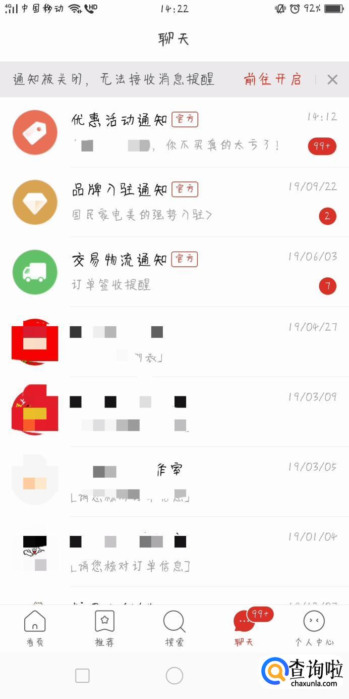 或者我们也可以在底端的菜单栏中选择“聊天”,打开“优惠通知”的聊天记录。在里面我们也可以看见兑换券的信息。
