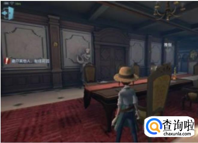 推到进门上图的椅子,慈善家会从你的右面走过来查看,这个时候你要沿着餐桌的左面快速跑向花园方向的门。