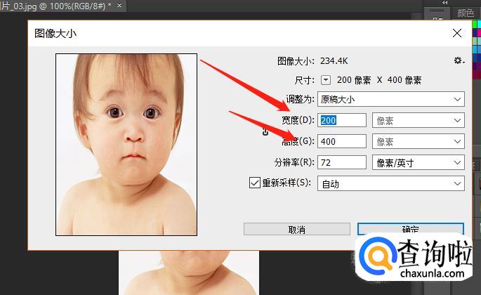 会弹出一个设置图像大小的窗口,输入你需要的大小尺寸,点击确定。