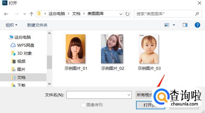 在弹出的对话框随便选择一张图片打开,ps中就会出现你选择的图片。
